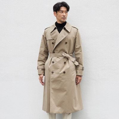 【上品な光沢と柔らかさを兼ね備えた、現代的ビジネス対応ダブルトレンチ】英国スタイルには欠かせない、クラシカルな雰囲気を演出するオーセンティックなダブルトレンチコートです